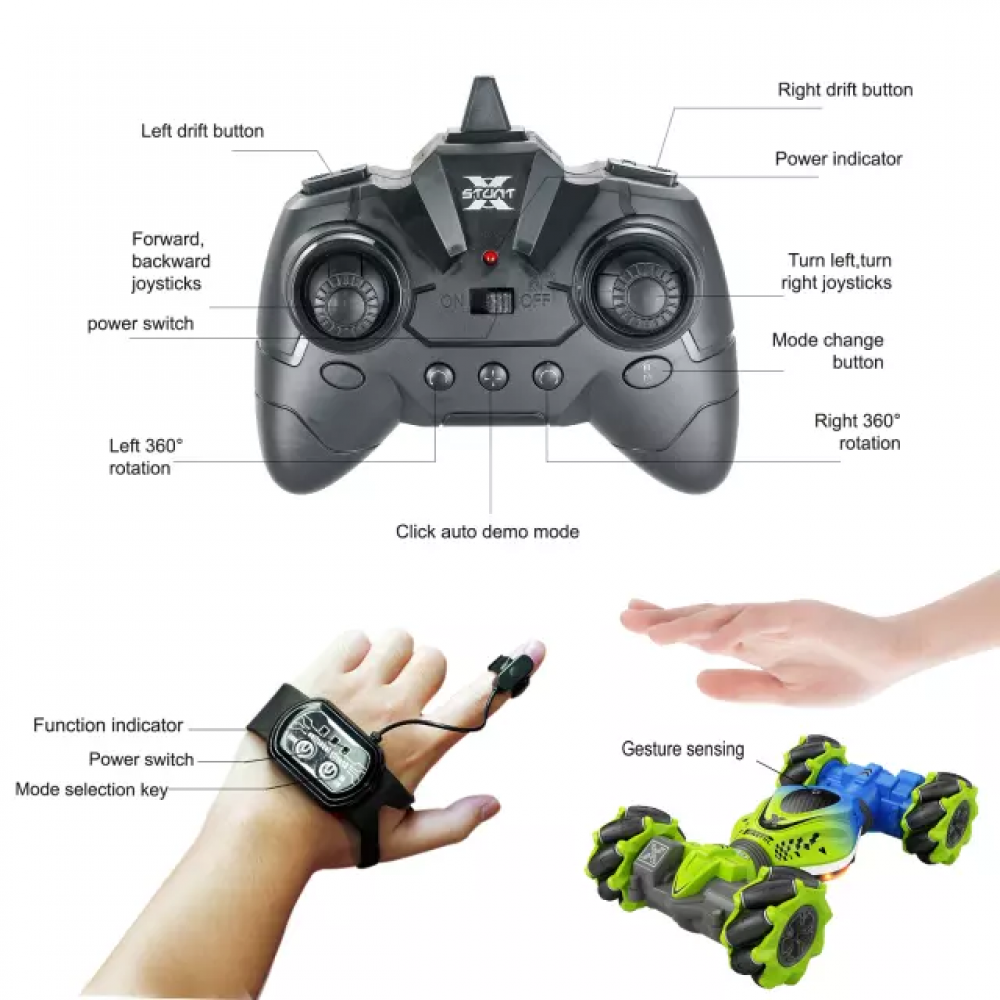 السيارة الاحترافية البهلوانية ذات الإضاءة والموسيقى الرائعة تحكم بساعة اليد ومستشعر أشعة